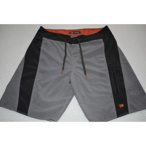 Cova Swimming Board Shorts Mens Size 34 Gray Zip Pocket Polyester Spandex Blend