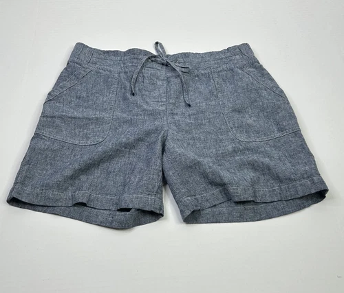 Talbots Chambray Shorts Women’s 8P Petite Blue Linen Blend Drawstring Waist