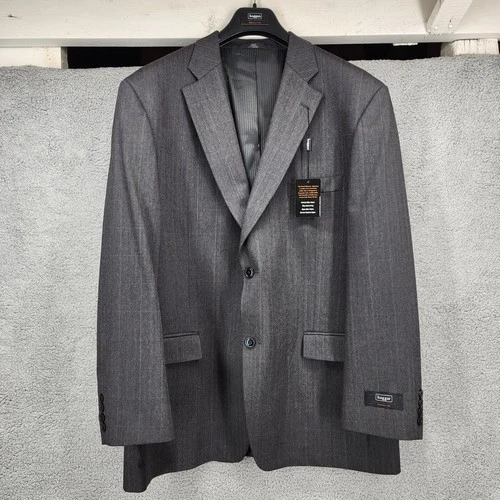 Haggar Road Warrior Sportcoat Mens 46L Gray Pinstripe Wool Blend Blazer Jacket
