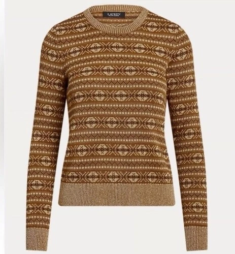 Lauren Ralph Lauren Metallic Fair Isle Sweater Cotton Blend Womens XS NEW $195