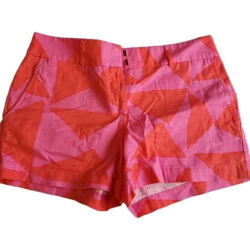 Ann Taylor LOFT Riviera Shorts Women’s 2 Pink Red Linen Blend Geometric Print