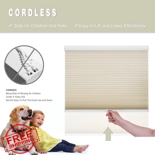 Changshade 21"W Beige Cordless Light Filtering Cellular Shades 50"H Blinds