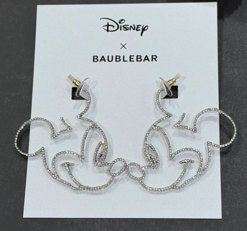 BaubleBar Disney MICKEY MOUSE Face RHINESTONE Head Outline BLING Silver Earrings