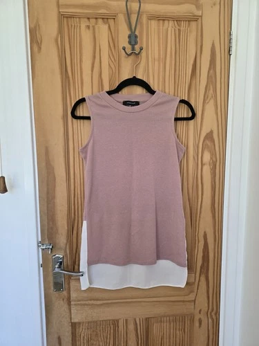 Atmosphere Women's Dusty Pink Ribbed Tunic Top Layered Hem Longline Vest Size 8