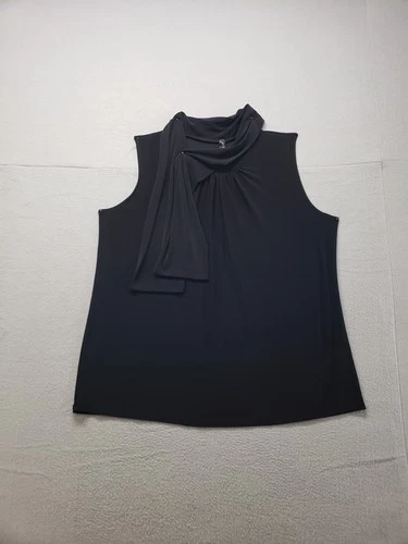 Jm Fleurette Women Tank Top 3X Black Sleeveless Tie Neck Stretch Workwear Blouse