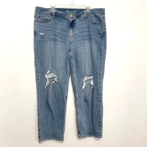 OLD NAVY Mid Rise Boyfriend Loose Jeans Light Wash Distressed Ripped Jeans 18 R