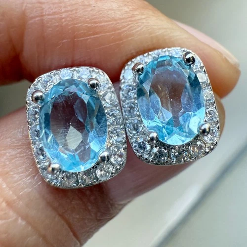 925 Sterling Silver Earrings 7x5mm Natural Topaz Gemstone Bridal Zircon Bridal