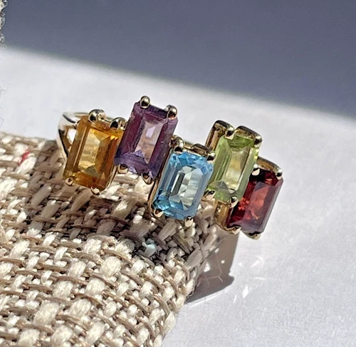 10K Gold Multi Gemstone Ring Garnet Peridot Topaz Amethyst Citrine Sz 6.75