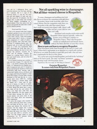 1976 Genuine Roquefort Cheese Blue Veined Sheep Milk Rich Taste France Print Ad