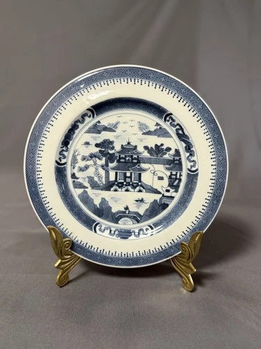Vintage Blue White Transferware Plate Asian Scenic Pagoda 9"