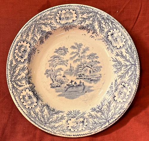 ANTIQUE VICTORIAN BLUE & WHITE TRANSFER WARE 7.25 inch SIDE/TEA PLATE Excellent