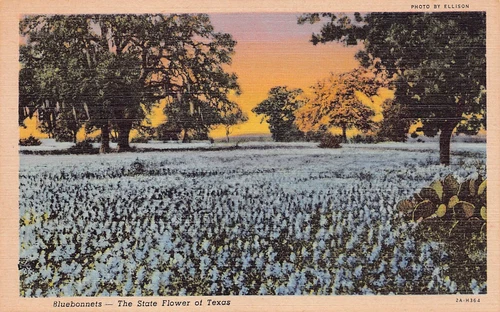 Amarillo TX Texas Bluebonnet Botanical Blue Flowers Sunset Vtg Postcard C31