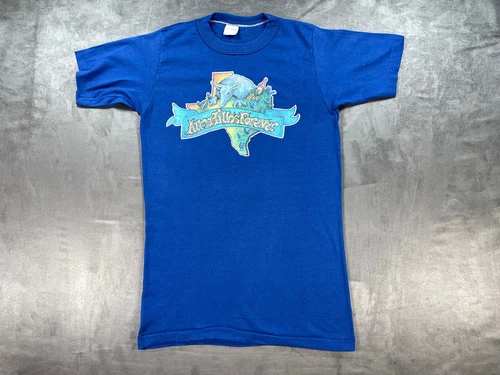 1970's XS Vintage Single Stitch Armadillo's Forever Shirt TEXAS Blue Bonnet Blue