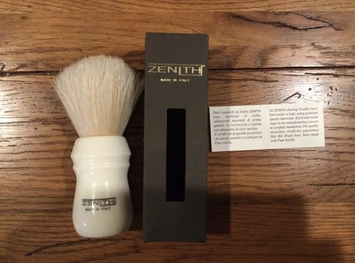 Zenith Pro Boar Brush w/ White Resin Handle. 28 x 57mm Knot. Pre-Owned.