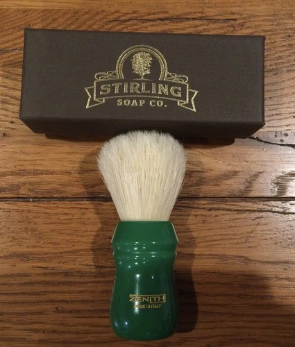 Zenith/Sterling Collab Boar Brush w/Green Resin Handle. 28mm knot. Preowned.