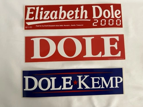 Elizabeth Dole Jack Kemp Original President Campaign Bumper Sticker 2000 Lot
