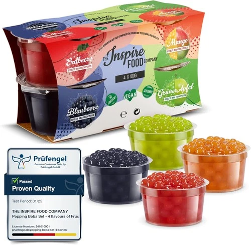 INSPIRE FOOD Bubble Tea Pearl Set - 4-Pack Popping Boba Fruit Pearls