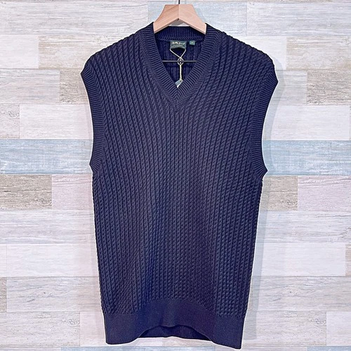 Bobby Jones Vintage 90s Cotton Cable Knit Sweater Vest Black Golf Mens Medium