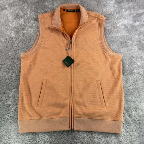 Bobby Jones Pima Cotton Vest Men's L Apricot Full Zip Sleeveless Knit NWT Peru
