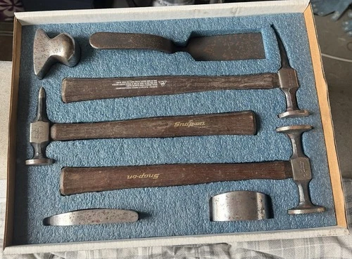 7pc Vintage Craftsman Auto Body Hammer & Dolly Set USA Wood Handle