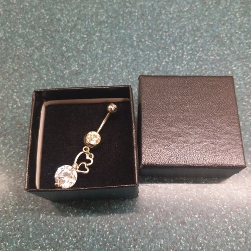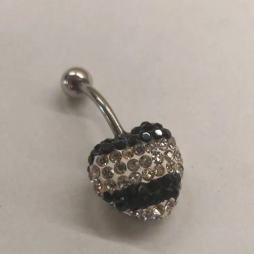14 Gauge Ball Belly Button Ring Body Piercing Jewelry Rhinestone Heart With Box