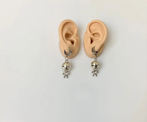 Full Body Alien Earrings Jewelry Guy Hoops Pierced or Clip On