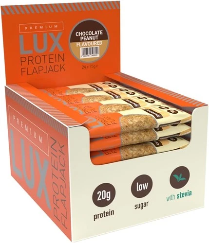 LUX 20g High Protein Flapjacks - Chocolate Orange - Best Oat Snack Bar - 24 Pack