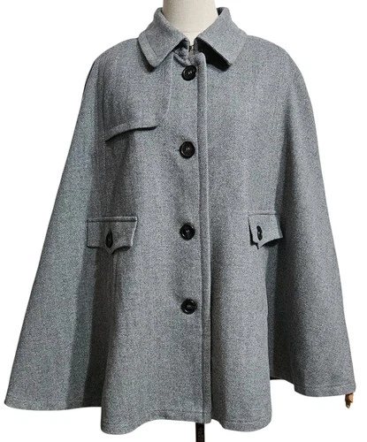 BOGNER VTG Women Cape-Coat Grey Herringbone Button Front Oversized US 12 ,S-M