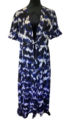 Express Womens Semi Sheer Tie Waist Maxi Long Dress Cover Up M/L Puff Sleeve