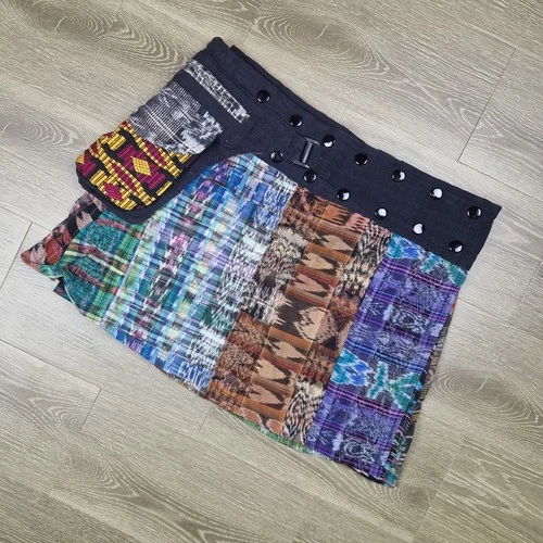Patchwork Festival Mini Skirt Utility Pocket Boho Grunge UK 12-16 Adjustable