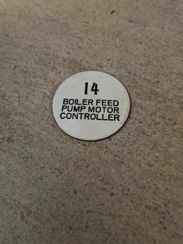 14 BOILER FEED PUMP MOTOR CONTROLLER SMALL PORCELAIN SIGN 2 INCH ORIGINAL SIGN
