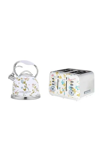 Laura Ashley Elveden Stove Top Kettle & 4 Slice Toaster Set Cream Floral - BNIB