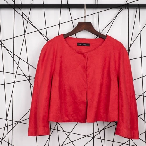 MARCCAIN Women's Red Faux Suede Cropped Jacket Bolero Size N4 L Germany Style