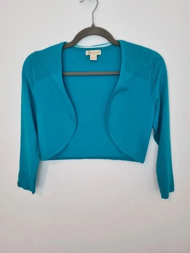Monsoon Teal Blue Cropped Bolero Shrug Cardigan UK 8 Stretch Wedding Evening