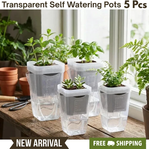 Transparent Self Watering Plant Pots Garden Planters Seedlings Nursery Flowerpot