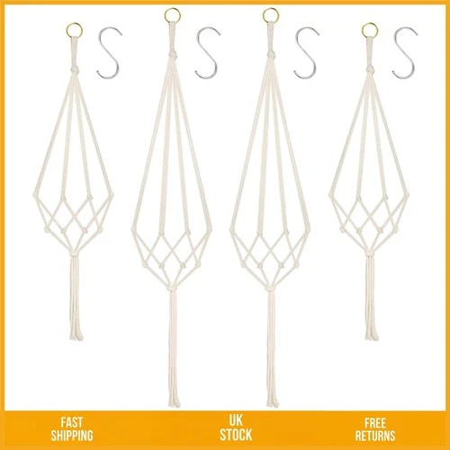 Elegant Macrame Cotton Rope Hanging Plant Pot Holders with Hooks 4 Pack 80 100