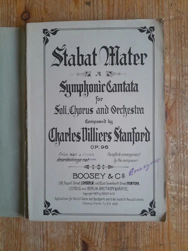 Stabat Mater by Charles Stanford - vintage vocal score pub Boosey & Co