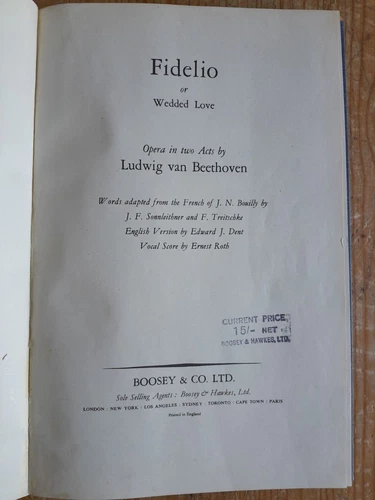 Fidelio - opera in 2 acts by Beethoven - vintage vocal score Boosey and Co HB