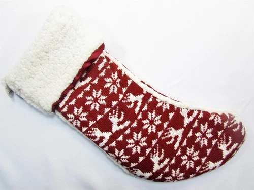 Boots & Barkley Knitted Holiday Stocking Dark Red/White Faux Sherpa Sheepskin