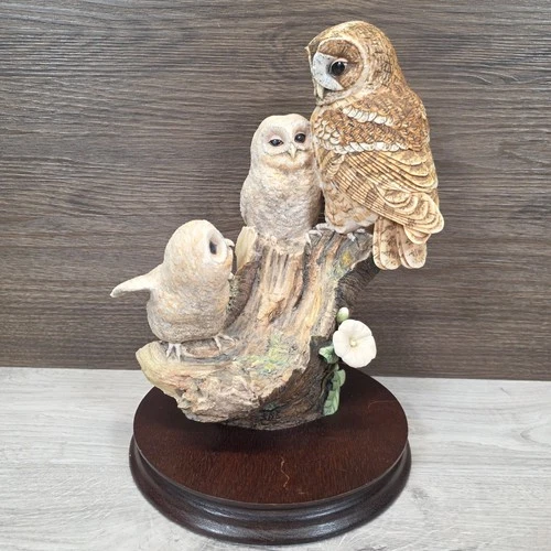 Border Fine Arts Tawny Owl With Young Owlets Wooden Plinth RB16 Figurine Resin