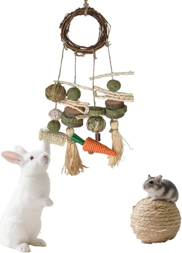 Rabbit Toys Boredom Breaker, Guinea Pig Toy Hamster Toys, Treats Rattan Ring wit