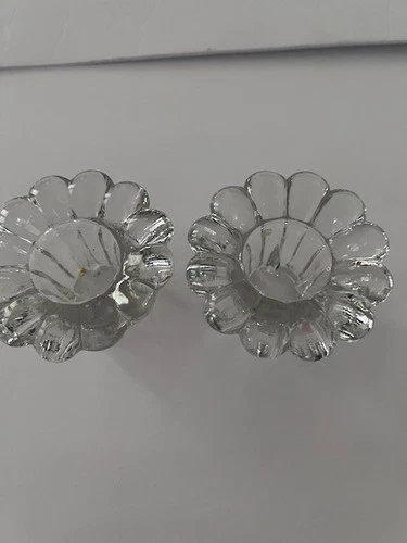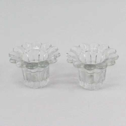 Set of 2 Vintage Borgonovo Clear Glass Flower Petal Votive Candle Holders