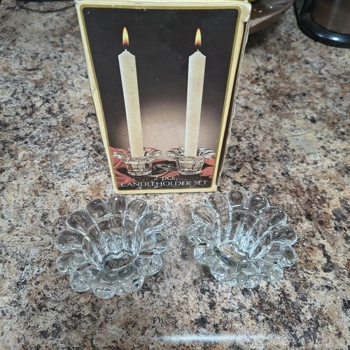 Vintage Made in Italy Crystal Glass Lotus Flower Taper Candle Holder Set of 2