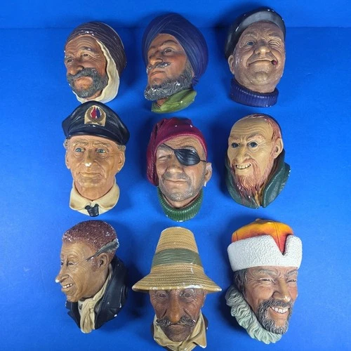 Bossins Chalkware Heads Lot of 9 Congleton England Vintage