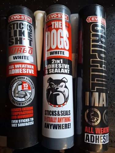 3x Evo-Stik Sticks Like Sh*t All Weather Turbo Adhesive Sealant WHITE 290ml Dogs
