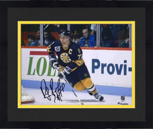 Framed Ray Bourque Boston Bruins Signed 8" x 10" Black Jersey Skating Photo