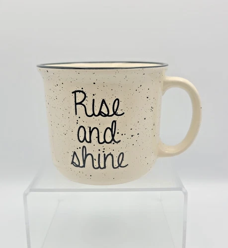 Boston Warehouse "Rise And Shine" Speckled Rustic Cabin Stoneware Coffee Mug