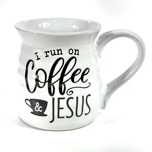 Christian Coffee Mug Tea Cup, I run on Coffee and Jesus, Large 21oz