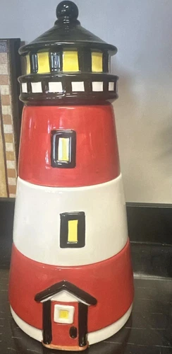 Vtg Boston Warehouse Lighthouse Condiment Serving Storage Set Ceramic 12” Tall