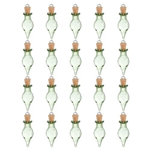 20 Pcs Single Point Mini Glass Bottles Jars with Cork Stopper Eye Screw, Green